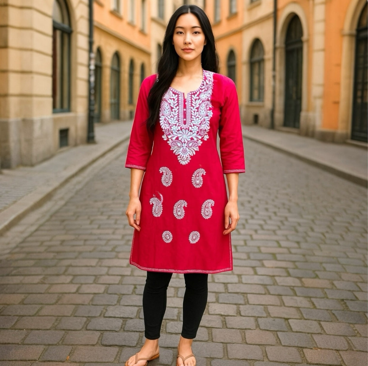 Experience the perfect blend of style and comfort with our Chikankari kurti top. Made of lightweight, breathable rayon fabric, this top is hand designed to add a vibrant touch to any outfit. Its versatile design makes it easy to match with any pants. Elevate your fashion game with this beautifully crafted kurti top.