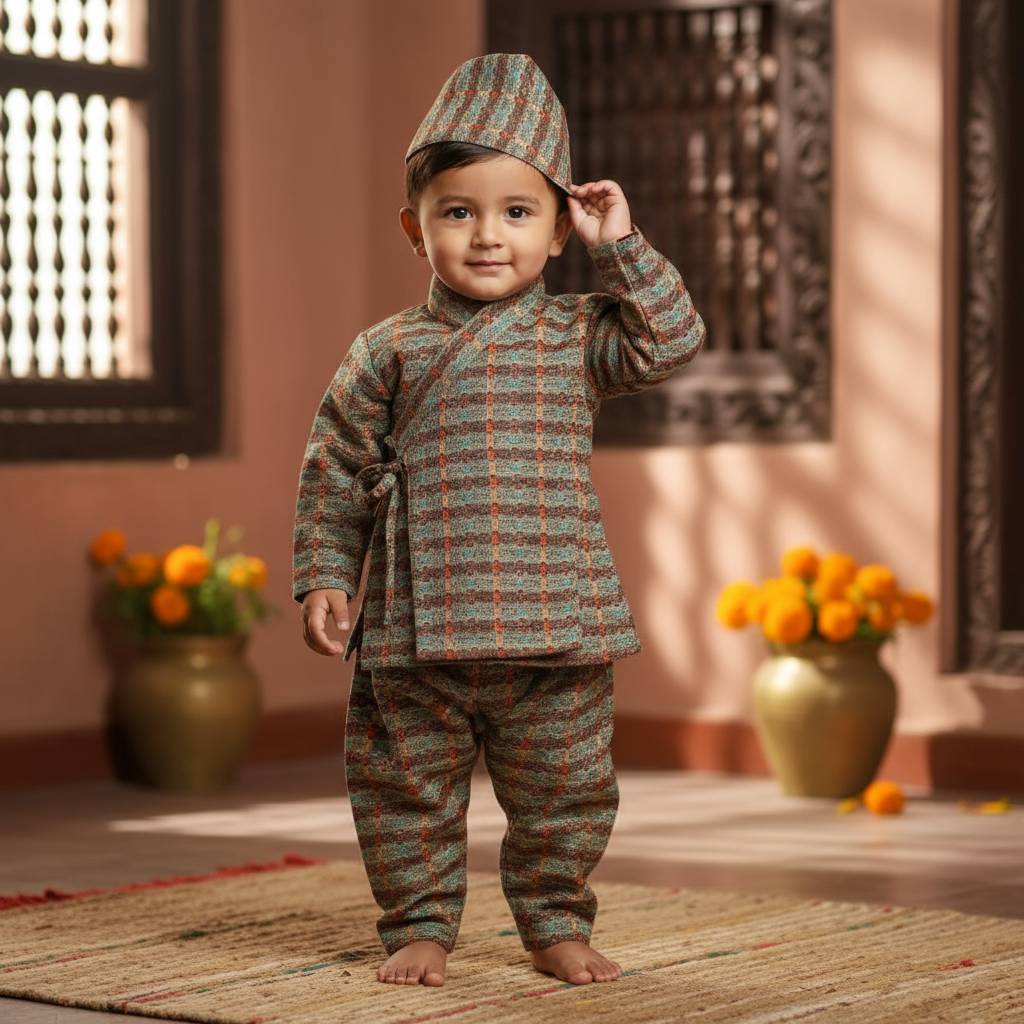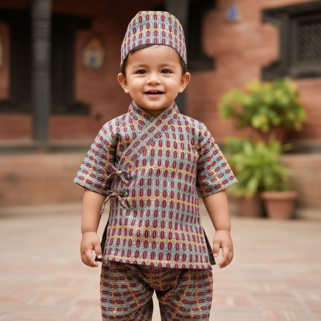 The Daura suruwal set is expertly crafted for traditional wear during festive occasions. Its vibrant design is quick to catch the eye and adds a touch of elegance to any celebration. Made with high-quality materials, this set is a must-have for a stylish and authentic ethnic look.
